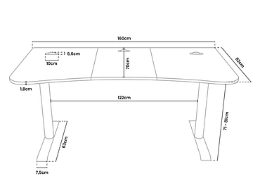 - Arena è un'eccezionale scrivania da gioco. L'intera superficie è ricoperta da un tappetino per mouse lavabile. Con le sue dimensioni generose di 160 cm x 82 cm, questa scrivania offre uno spazio di lavoro confortevole.