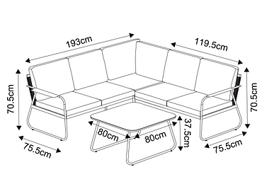 Il set da giardino BASTIA in acciaio grigio scuro vi offrirà uno spazio esterno elegante e confortevole. Godetevi lo spazioso divano angolare, composto da un divano a 2 posti e da un divano a 3 posti, ideale per ospitare fino a cinque persone. Il tavolino, con piano in vetro effetto legno, unisce estetica e funzionalità. I cuscini inclusi garantiscono un comfort ottimale per i vostri momenti di relax all'aperto. La finitura opaca dell'acciaio e la composizione in 100% poliestere del tessuto aggiungono un tocco di modernità. Questo set è perfetto per creare un'accogliente area lounge in giardino o in terrazza. Il peso massimo consigliato è di 220 kg (divano a 2 posti) e 300 kg (divano a 3 posti). Il set è realizzato in acciaio, poliestere e vimini sintetico.