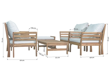 - Set 100% acacia con cuscini beige