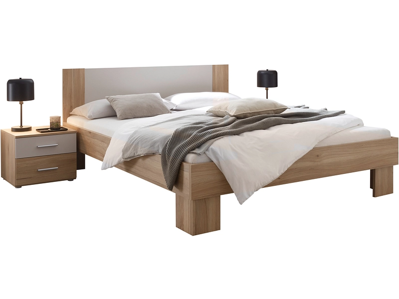 Set di letto con 2 comodini BIONA 160x200cm effetto quercia