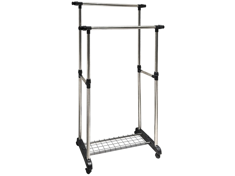 Scoprite l'appendiabiti GARDEO argento, la soluzione ideale per organizzare i vostri vestiti con stile. Il suo colore argento si adatta perfettamente a qualsiasi interno. Realizzato in robusto acciaio e plastica, questo scaffale è resistente e leggero. È possibile regolare la lunghezza da 90 a 150 cm e l'altezza da 90 a 160 cm, in modo da adattarlo perfettamente alle vostre esigenze e allo spazio disponibile. Questo portaoggetti unisex è un accessorio pratico ed elegante.