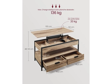 SONGMICS Tavolino RUSTIK 50x100x63cm color cammello