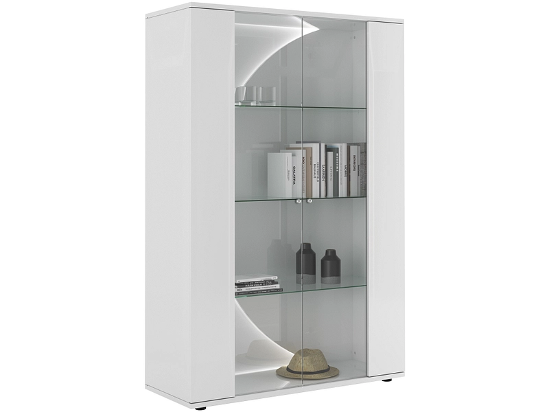La vetrina PULP 45x120x180cm offre un ampio spazio di archiviazione con un tocco di eleganza. Ammirate la sua finitura laccata lucida, impreziosita da piedini laccati in tinta. Il suo design semplice si armonizza perfettamente con l'arredamento. Il meccanismo di apertura a pressione facilita l'accesso ai vostri oggetti. Grazie alle ante a battente e ai ripiani in vetro temperato trasparente, potrete ammirare i vostri pezzi più belli, messi in risalto dall'illuminazione a LED integrata. Godetevi i vantaggi di un mobile certificato PEFC misto, che unisce estetica e rispetto per l'ambiente grazie al suo pannello di particelle. Le sue dimensioni di 45x120x180 cm sono ideali per una disposizione armoniosa.